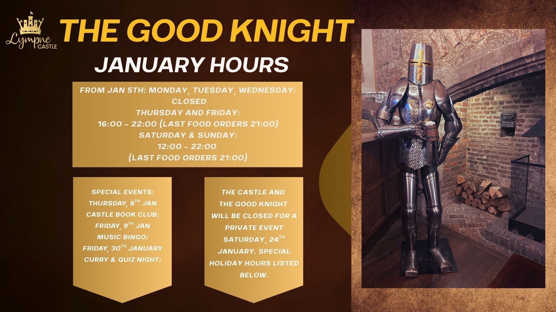 1st January – The Castle, The Good Knight & The Naughty Dog are CLOSED