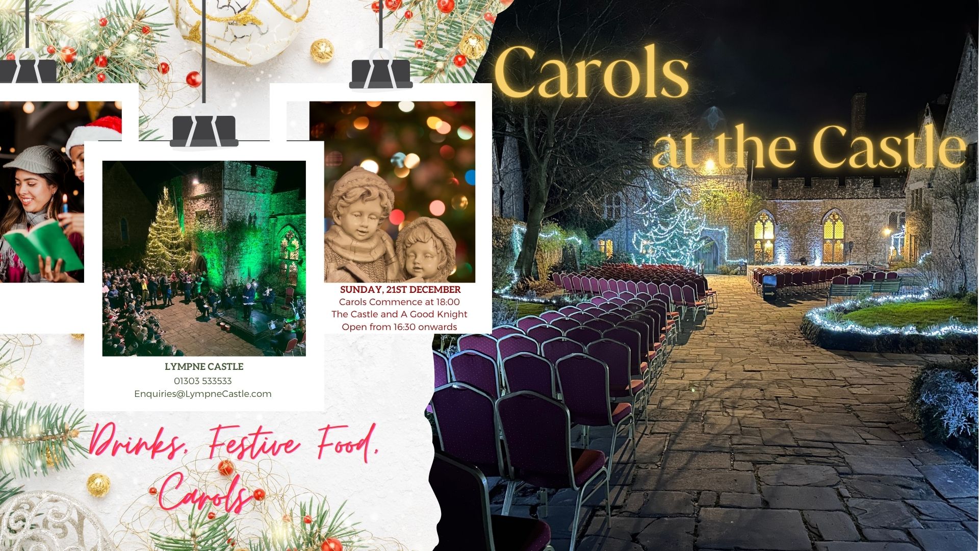 Join us as the carols begin at 18:00 and make an evening of it — the Castle and A Good Knight open at 16:30.