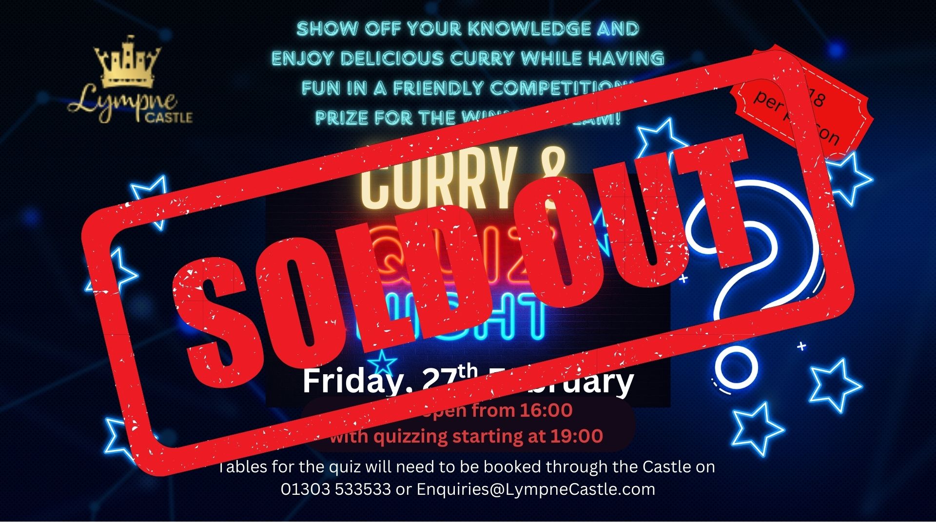Join us for a spectacular Curry & Quiz Night at the enchanting Lympne Castle! Enjoy a delicious curry in a grand historic setting while testing your knowledge in a thrilling quiz. Gather your team, soak in the castle’s unique atmosphere, and compete for fantastic prizes. A night of great food, fun, and friendly competition awaits—don’t miss out! Book your spot now!